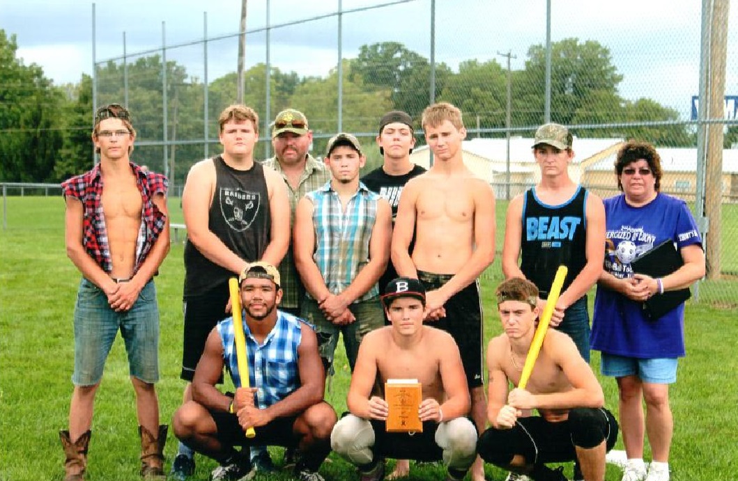 Winners! - Members of the Bill Miller's Auto Sales team that won first place in this year's second annual Energized by Ebony wiffleball tourney. In front, from left, are Gus Ranley, Bill Miller, Jaxton Suman, Clark Gable and Lucas Suman. In back are Cody Shifferly, Corbin Kuhnle, Tyler Reinhart, Luke Snyder and Cody Hess